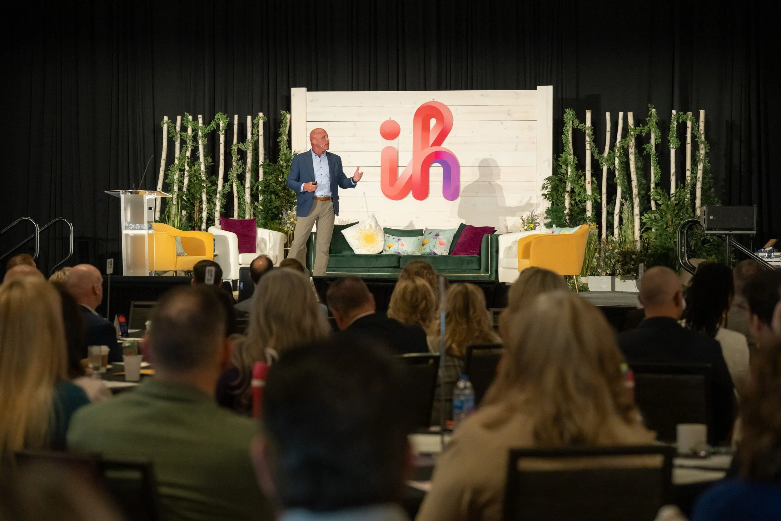 Staging and Decor - We want your stage to reflect the vibe, branding and energy you want to communicate to your guests. That might be a soft, warm theme with furniture and decor that feels comfortable and welcoming or it could be an edgy, modern, exciting vibe. We love coming up with creative ideas to keep the look of your meeting interesting and on message using our large inventory of scenic pieces, lighting, draping, custom builds, signage and more